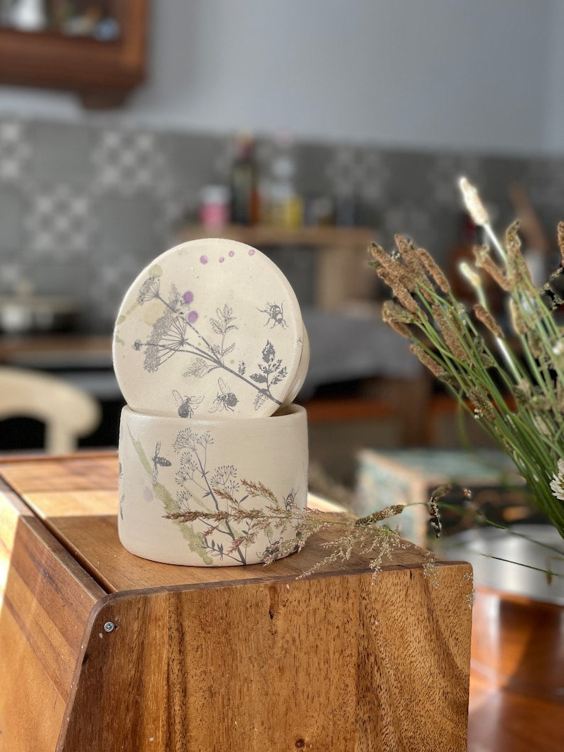 Salt Cellar, Salt Pig Salt keeper, ceramic salt pot, botanical