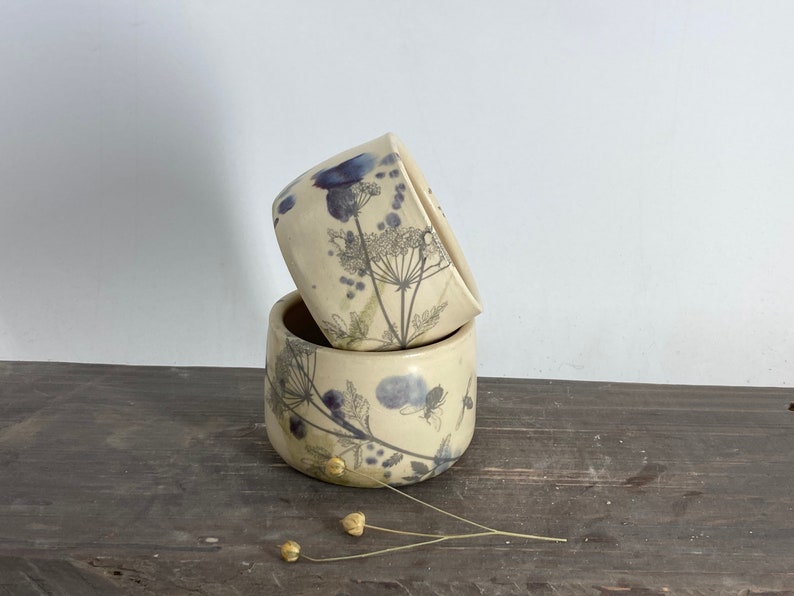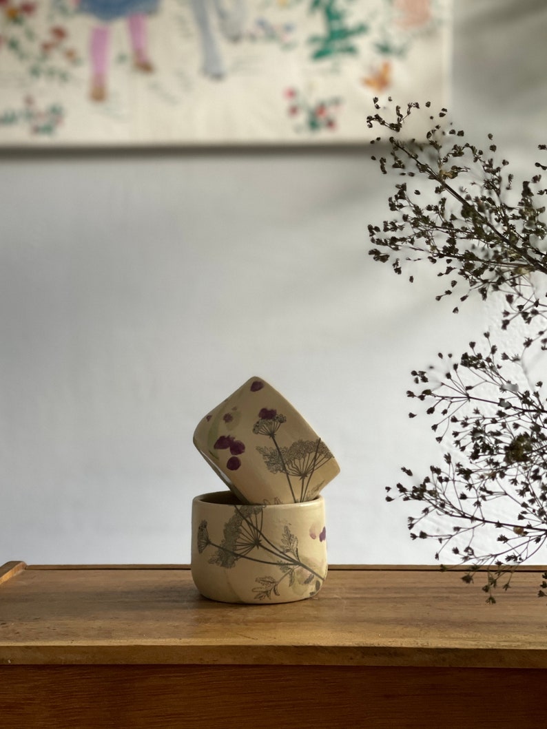 ceremonial cacao pitcher, Espresso/coffee tumbler, botanical, set of two
