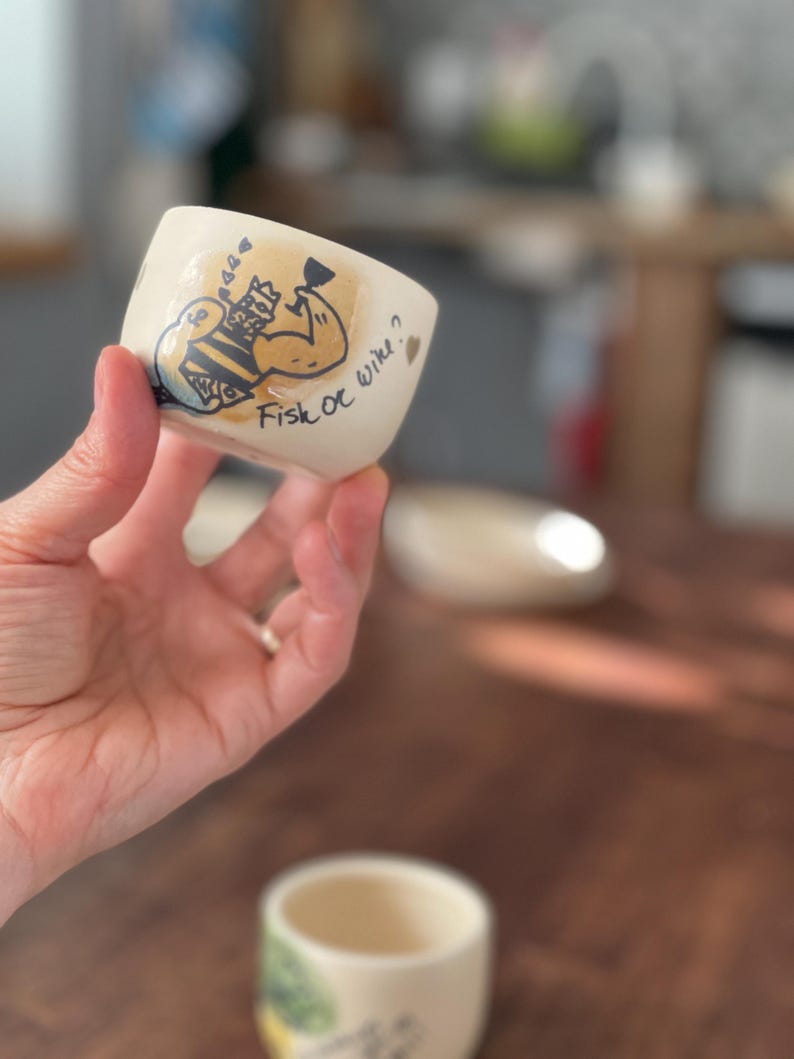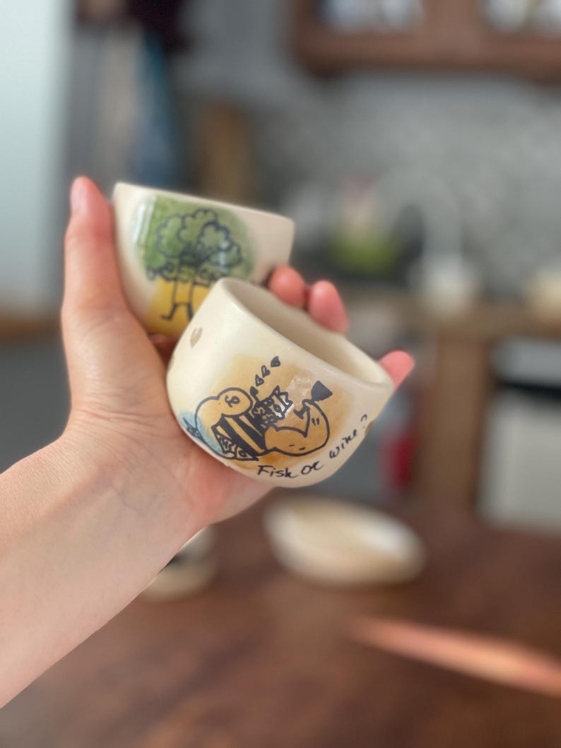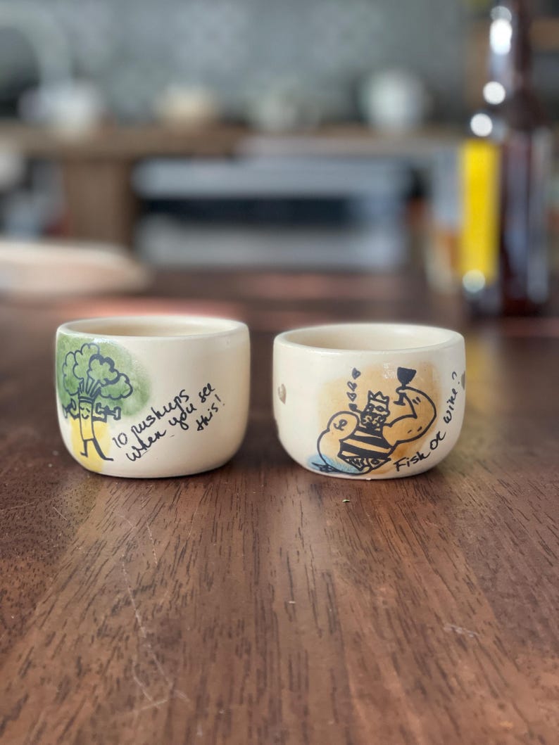 Made from white clay, fired on 1050°C (1920F), handpainted.